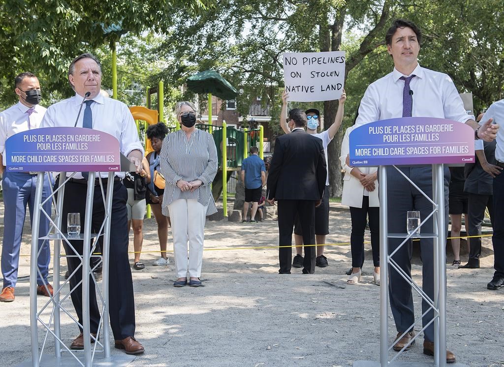 Pour sa part, lors d'un point de presse séparé, M. Trudeau a averti qu'il s'attendait à ce que les provinces s'engagent à améliorer le réseau de la santé.