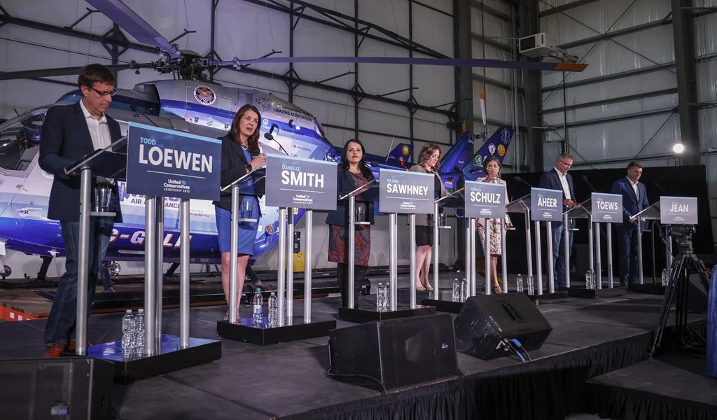 Sept candidats sont en lice pour succéder au premier ministre Jason Kenney à la tête du parti. Celui-ci a annoncé son départ en mai après avoir reçu un maigre soutien de 51 % lors d'un vote sur son leadership du parti.