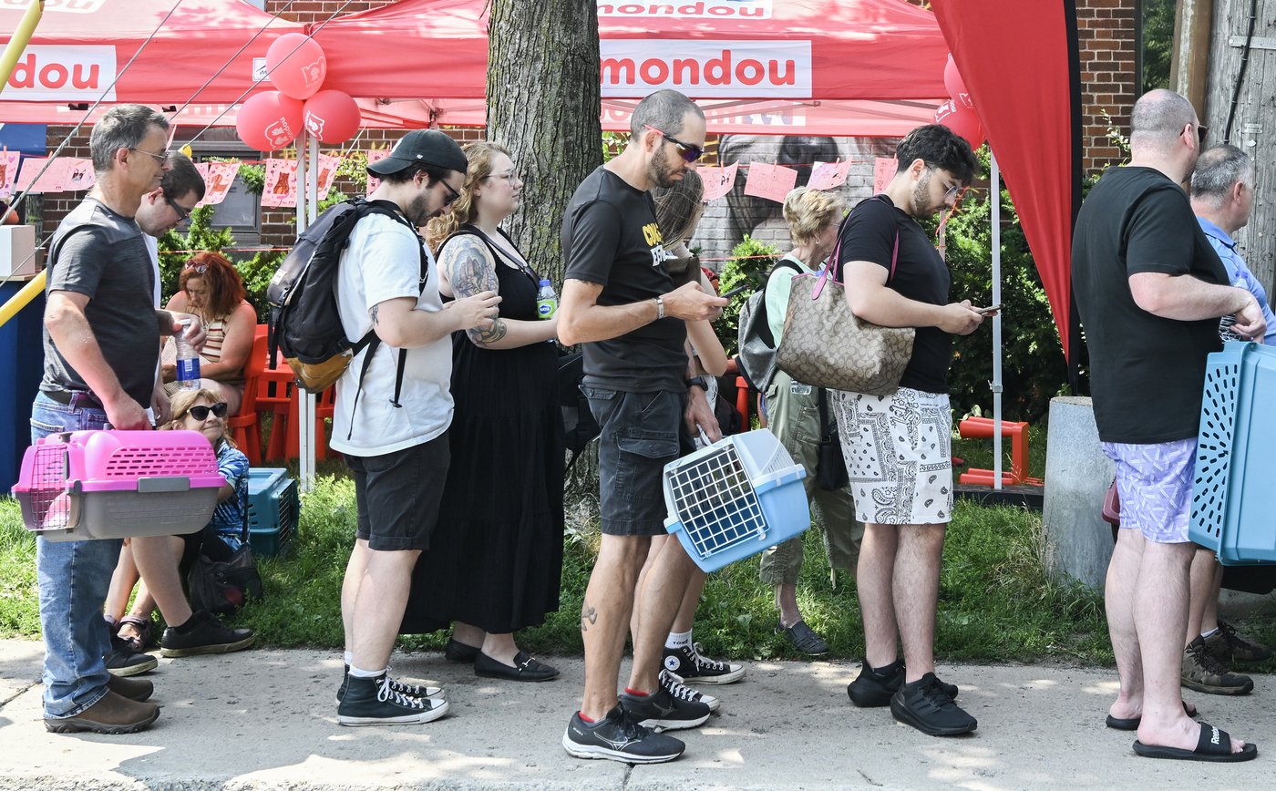 L'événement commençait à 11 h, mais les premiers venus sont arrivés vers 6 h 15 pour s'assurer de trouver leur nouvel ami. Dans la foule, des gens venaient entre autres de Saint-Rémi, de Brossard et de partout sur l'île de Montréal.