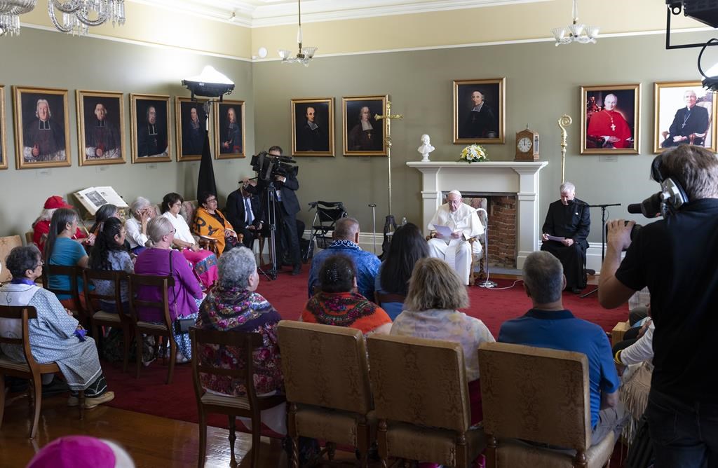 Avant de se diriger vers Iqaluit, dernière étape de son voyage pénitentiel d'une semaine au Canada, le pape François s'est entretenu, vendredi matin, avec une délégation d'Autochtones de l'Est du Canada.