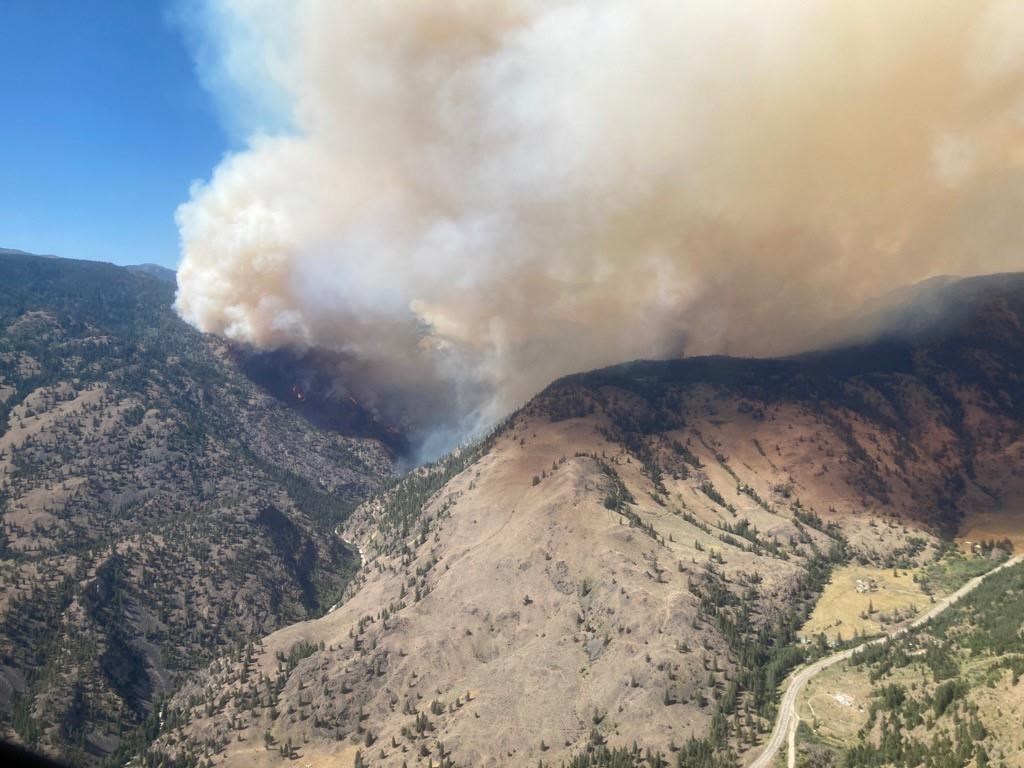 L'incendie est soupçonné d'être d'origine humaine. Cet incendie brûle de l'autre côté du fleuve Fraser depuis Lytton, qui a été laissé en ruines après qu'un autre incendie de forêt a balayé le village l'année dernière.