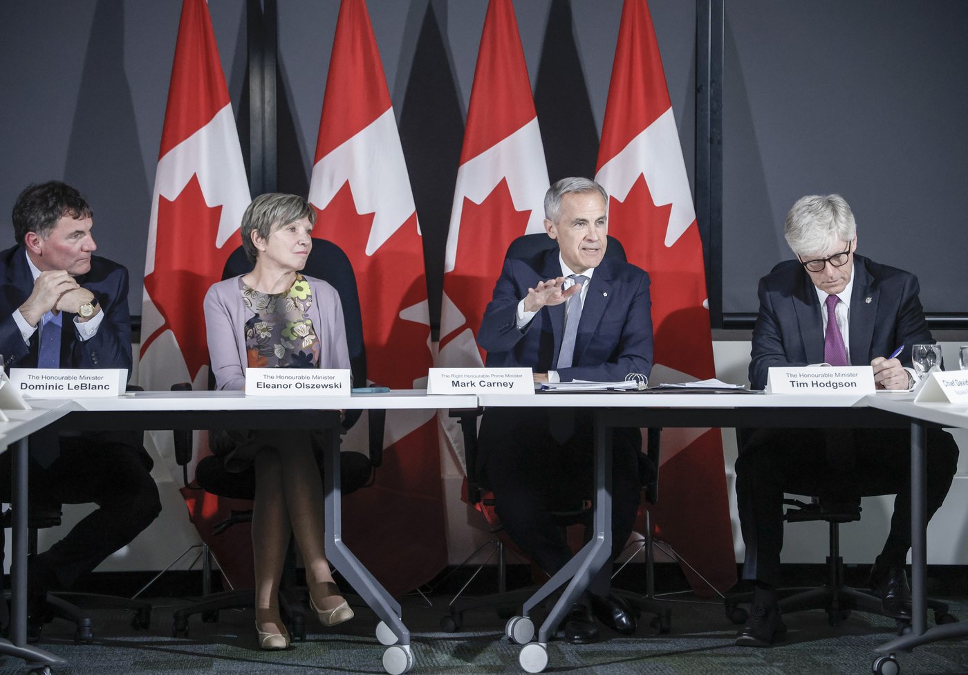 «Le partenariat est le thème de notre discussion de ce matin», a déclaré M. Carney, accompagné de Tim Hodgson, ministre de l'Énergie, de Dominic LeBlanc, ministre responsable du Commerce Canada–États-Unis, des Affaires intergouvernementales et de l’Unité de l’économie canadienne, et d'Eleanor Olszewski, ministre de la Gestion des urgences et de la Résilience des communautés.