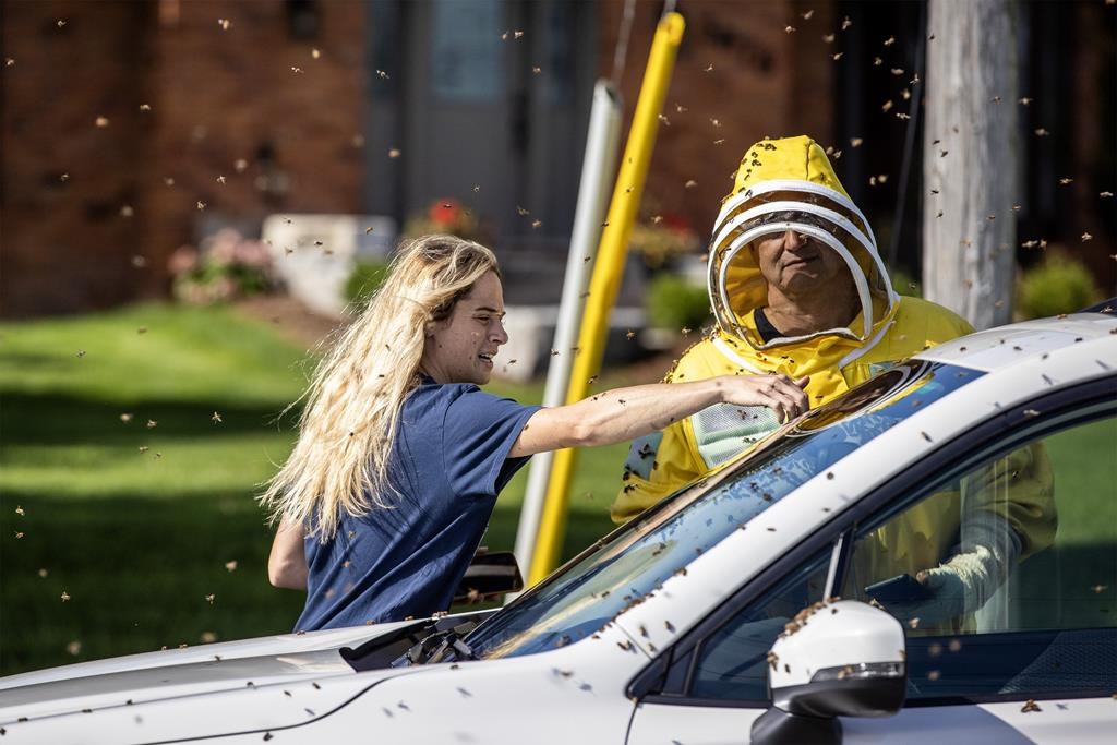 Environ une heure après que la police eut publié un avis sur les réseaux sociaux, l'agent Anderson a déclaré que plusieurs apiculteurs étaient en contact avec les autorités pour venir en aide. Six ou sept apiculteurs sont finalement arrivés sur place, a-t-il indiqué.