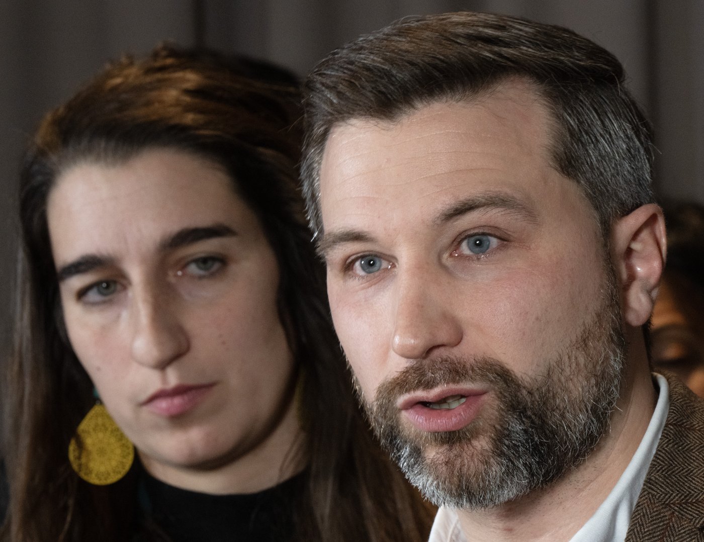 À ses côtés, Christine Labrie, qui a remplacé Émilise Lessard-Therrien au pied levé, a affirmé : «Tout le monde aurait préféré que ce soit Émilise qui soit au micro en ce moment. J'en suis bien consciente».