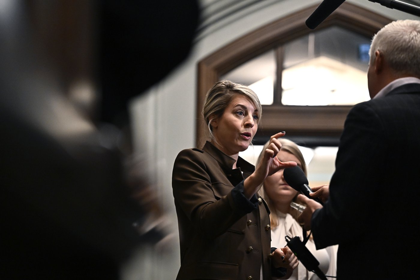 «Le problème avec Pierre Poilievre, c’est que lorsqu’il regarde le conflit au Moyen-Orient, il n'est pas capable de dire le mot ‘’paix’’. C'est comme un tabou», a-t-elle dit en mêlée de presse avant de se rendre à une réunion du caucus libéral.