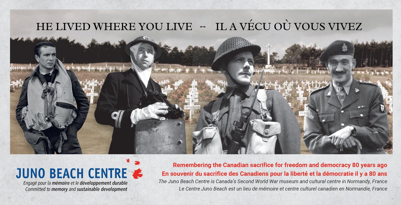 Dans le cadre de son programme «Il a vécu là où vous vivez», le Centre Juno Beach, le mémorial de guerre du Canada dans la région française de Normandie, a envoyé des cartes postales à 1 945 adresses pour souligner le 80e anniversaire du jour de la Victoire en Europe, le 8 mai 1945.