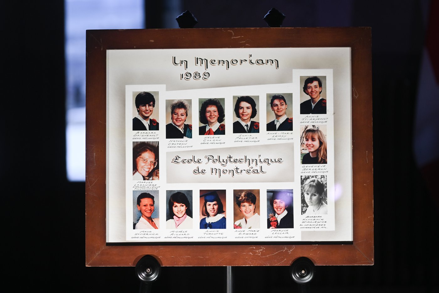 Les 14 femmes assassinées le 6 décembre 1989 étaient Geneviève Bergeron, Hélène Colgan, Nathalie Croteau, Barbara Daigneault, Anne-Marie Edward, Maud Haviernick, Maryse Laganière, Maryse Leclair, Anne-Marie Lemay, Sonia Pelletier, Michèle Richard, Annie St-Arneault, Annie Turcotte et Barbara Klucznik-Widajewicz.