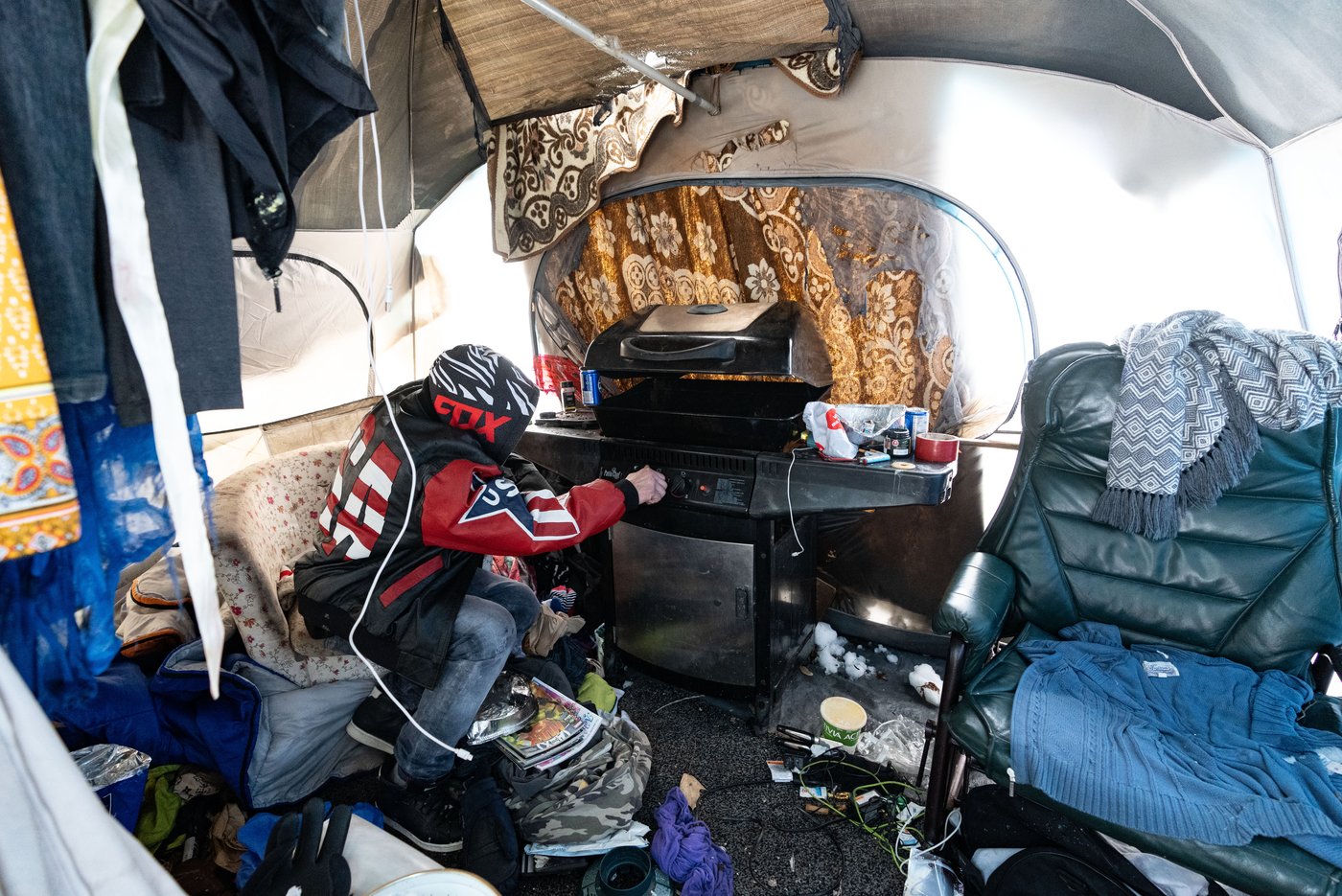 Les refuges sont bondés et les haltes chaleurs — qui contiennent uniquement des chaises et non des lits — fonctionnent aussi au maximum de leur capacité. Entre errer dans les stations de métro ou dormir debout dans les restaurants ouverts 24h, plusieurs personnes itinérantes décident de s'abriter dans une tente, qui offre au moins une certaine stabilité.