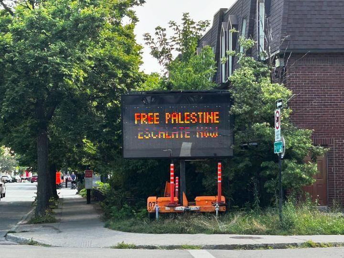 Des panneaux de signalisation à Montréal affichent des slogans propalestiniens
