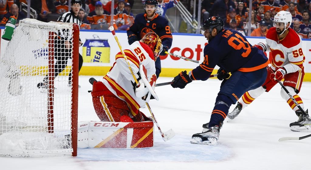 EDMONTON — Evander Kane a inscrit un tour du chapeau en l'espace de six minutes en deuxième période et les Oilers d'Edmonton ont étrillé les Flames de Calgary 4-1, dimanche, pour prendre les devants 2-1 dans la série demi-finale de l'Ouest.