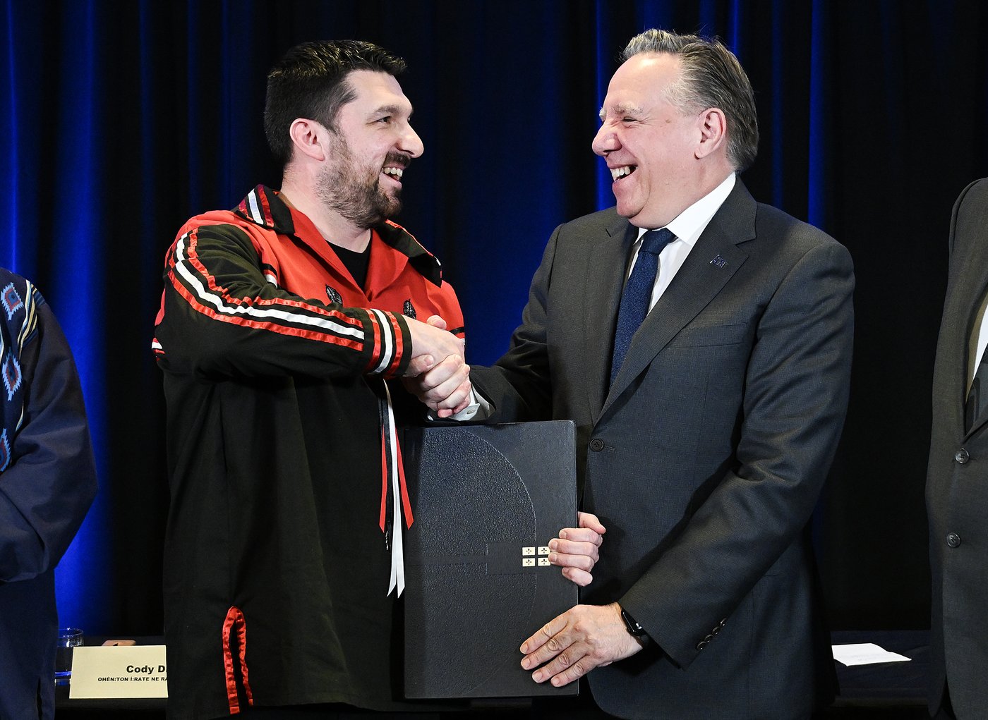 Assis côte à côte dans un hôtel de Montréal, le premier ministre François Legault et le grand chef du conseil mohawk, Cody Diabo, n’ont pas caché leur satisfaction d’apposer leurs signatures sur le document qui, bien que symbolique, apparaît comme un baume sur une relation souvent tendue entre Québec et les Mohawks de Kahnawake.
