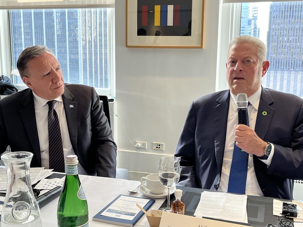 NEW YORK — Le premier ministre du Québec, François Legault, a vanté son bilan environnemental mardi lors d’une rencontre des représentants du groupe Beyond Oil and Gas Alliance. L’ancien vice-président américain, Al Gore, était du nombre.