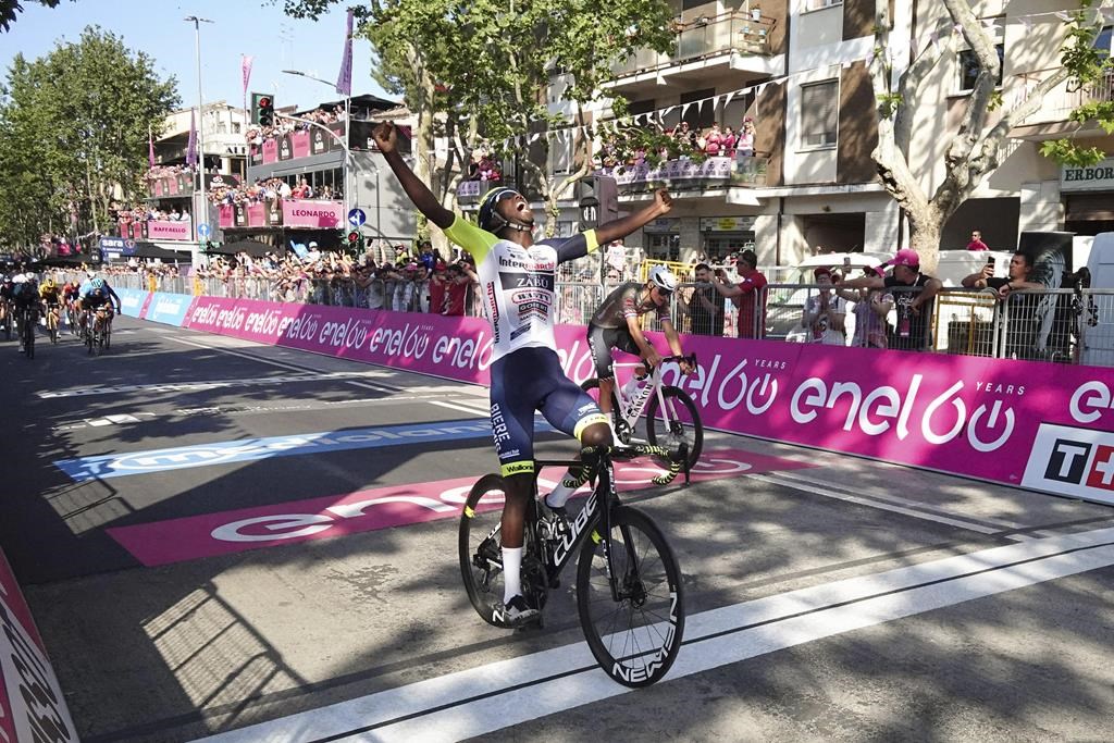Le cycliste de l'Érythrée était devenu le premier Africain noir à signer une victoire d'étape dans une épreuve majeure, mardi, après avoir devancé Mathieu van der Poel à l'issue d'un sprint final endiablé à Jesi. Il a cependant dû être transporté vers un hôpital du secteur après s'être blessé à un oeil avec le bouchon d'une bouteille de Prosecco alors qu'il célébrait sur le podium.