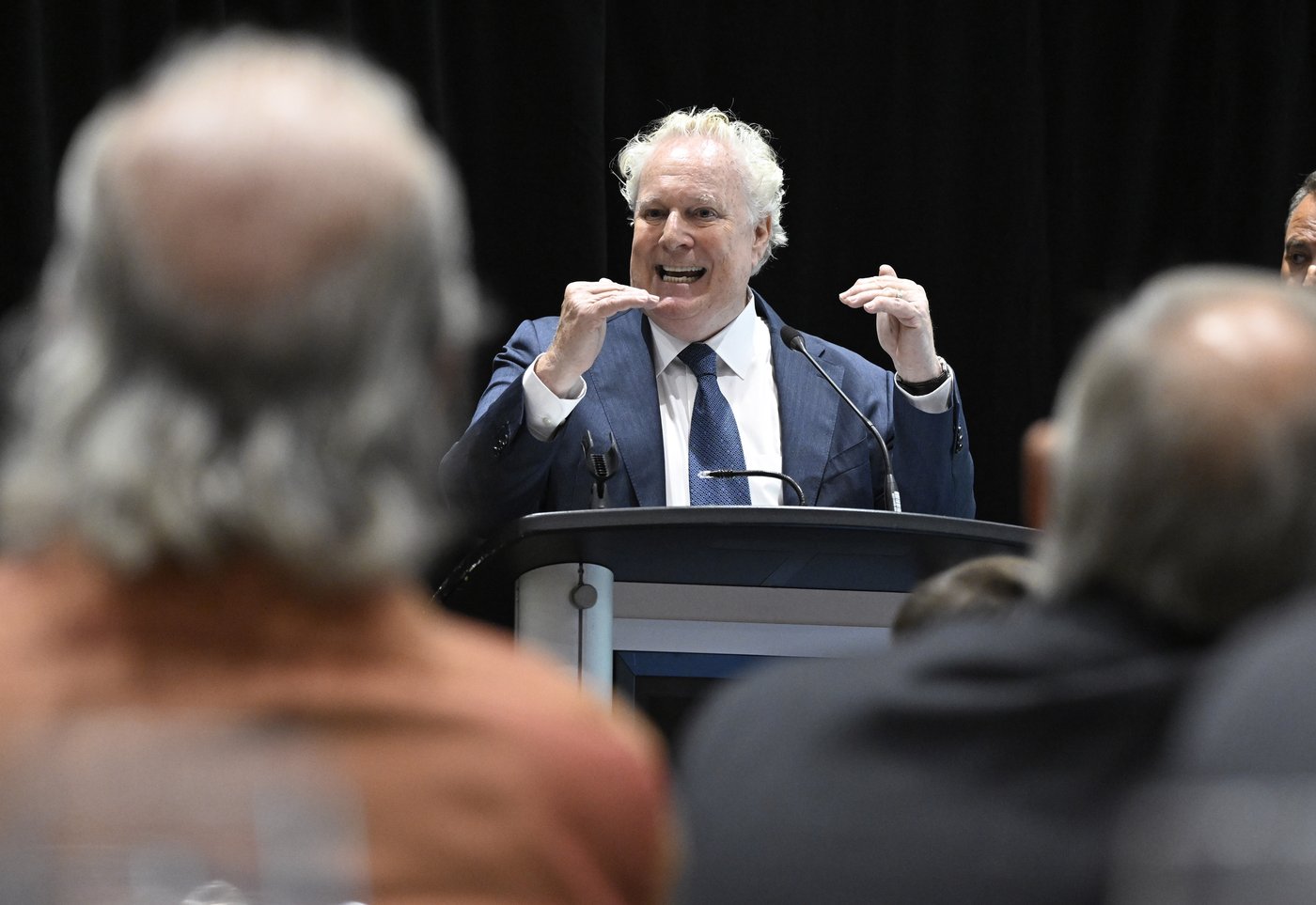 Selon M. Charest, le président américain et sa guerre tarifaire nous forcent à «revoir notre fiscalité, revoir notre économie et revoir la façon dont on fait les projets».