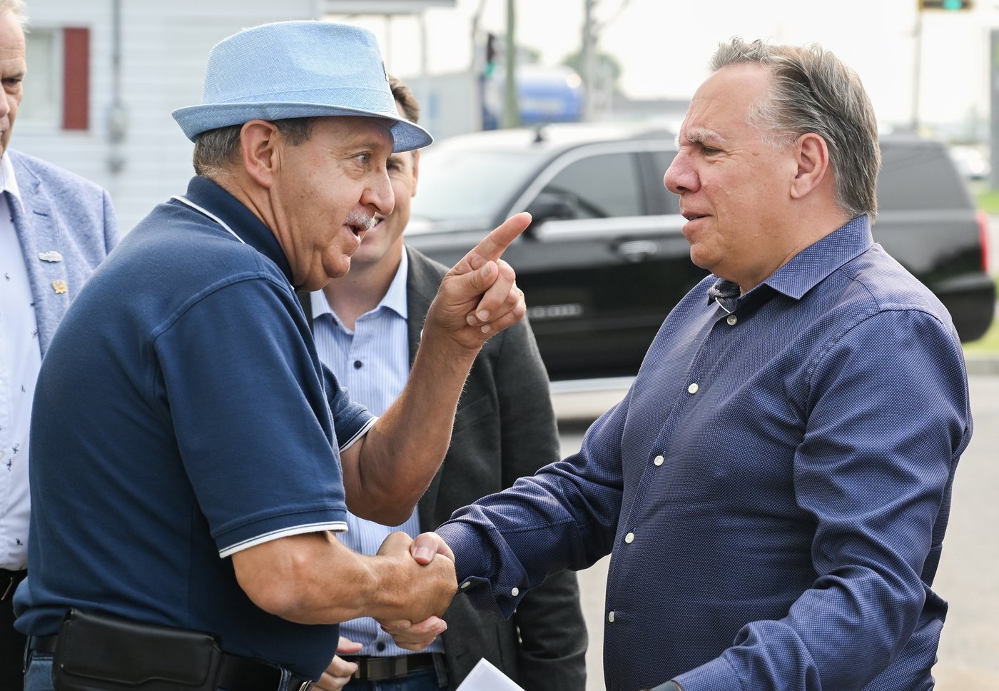 M. Legault s'est rendu jeudi matin à Louiseville, en Mauricie, où il a rencontré le maire Yvon Deshaies et divers intervenants de la région, qui tente de se remettre des fortes pluies de la tempête Debby.