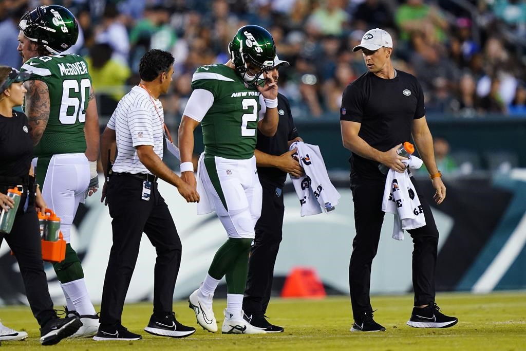 Le quart de 23 ans s'est blessé tôt dans le match préparatoire de vendredi à Philadelphie, où les Jets ont gagné 24-21.