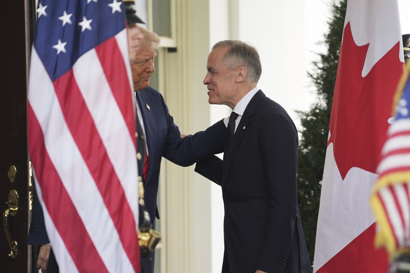 Les deux hommes avaient d'abord échangé une poignée de main solennelle à l'arrivée à la Maison-Blanche de M. Carney, échangeant quelques sourires devant les caméras.