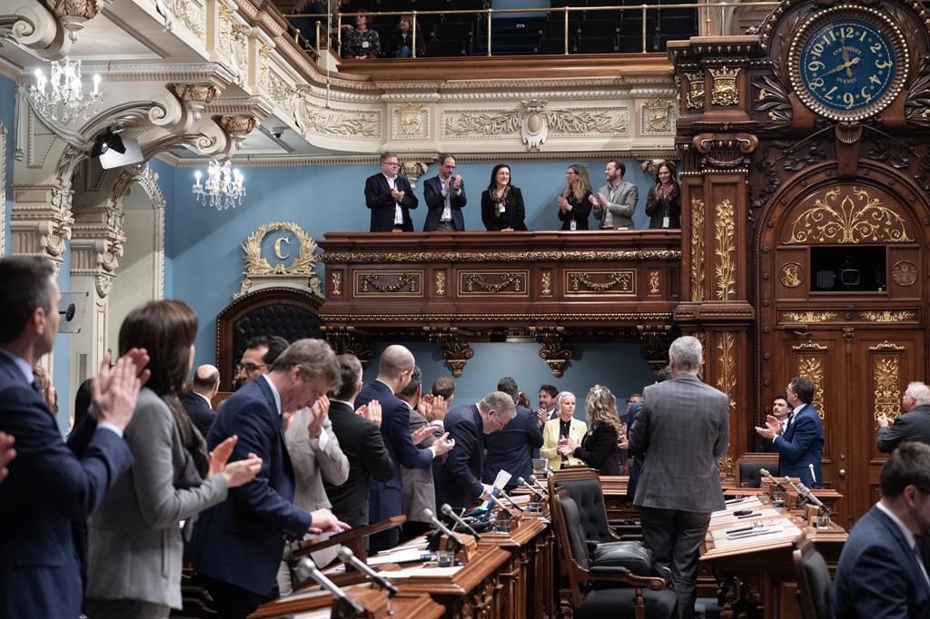 Mme Richer a reçu une ovation de la part de l'ensemble des élus présents à la suite de la lecture et de l'adoption à l'unanimité d'une motion, qui se lit comme suit: «Que l'Assemblée nationale souligne la carrière de madame Jocelyne Richer, correspondante parlementaire puis chef du bureau de La Presse Canadienne à Québec jusqu'à son départ à la retraite; que l'Assemblée nationale salue la contribution de Mme Richer et de tous les artisans et artisanes de la Tribune de la presse à la vie démocratique du Québec.»