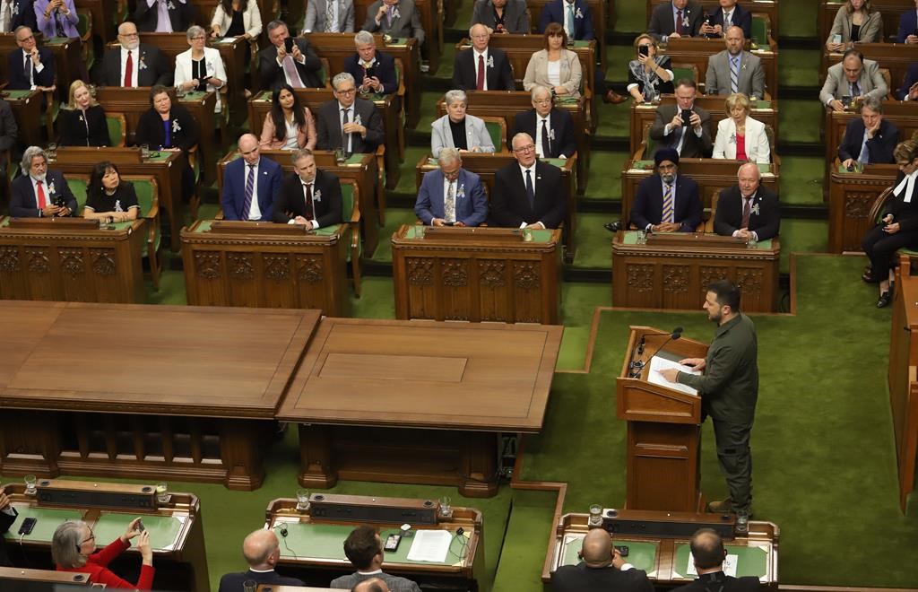 Plusieurs organisations ukrainiennes au Canada ont critiqué les conservateurs pour leur vote contre le projet de loi de libre-échange ukrainien et les libéraux s'en sont emparés, accusant les conservateurs de se plier aux commentateurs et politiciens américains de droite qui ont pris le parti de la Russie plutôt que celui de l'Ukraine dans le conflit.