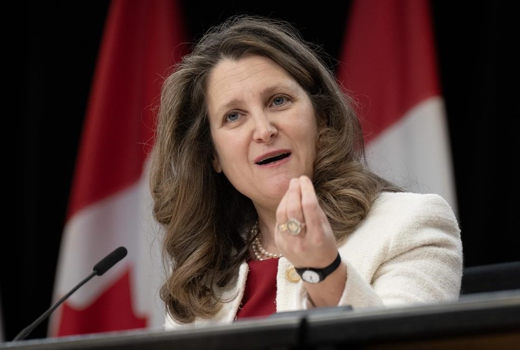 La ministre Freeland a fait cette annonce mardi aux côtés d'autres membres du cabinet lors d'une conférence de presse hebdomadaire à Ottawa.