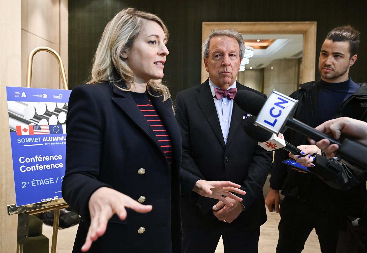 OTTAWA — La ministre de l'Industrie, Mélanie Joly, affirme qu'Ottawa s'engage à utiliser l'acier et l'aluminium canadiens dans ses projets nationaux d'infrastructures et de défense, alors que le président Donald Trump menace d'imposer de nouveaux droits de douane.