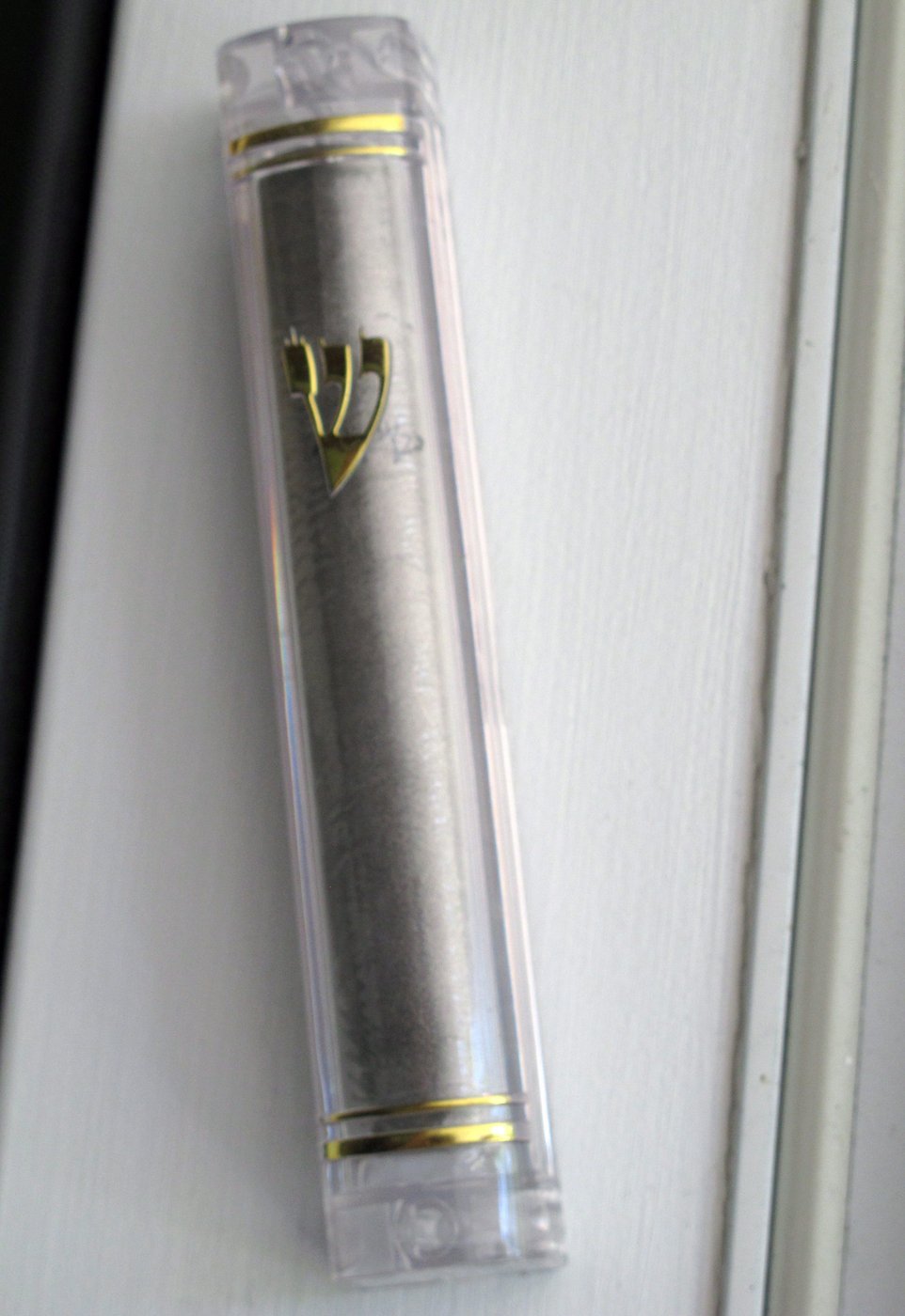 Une mézouza est un parchemin portant des inscriptions bibliques que de nombreux Juifs fixent au montant de la porte de leur domicile.