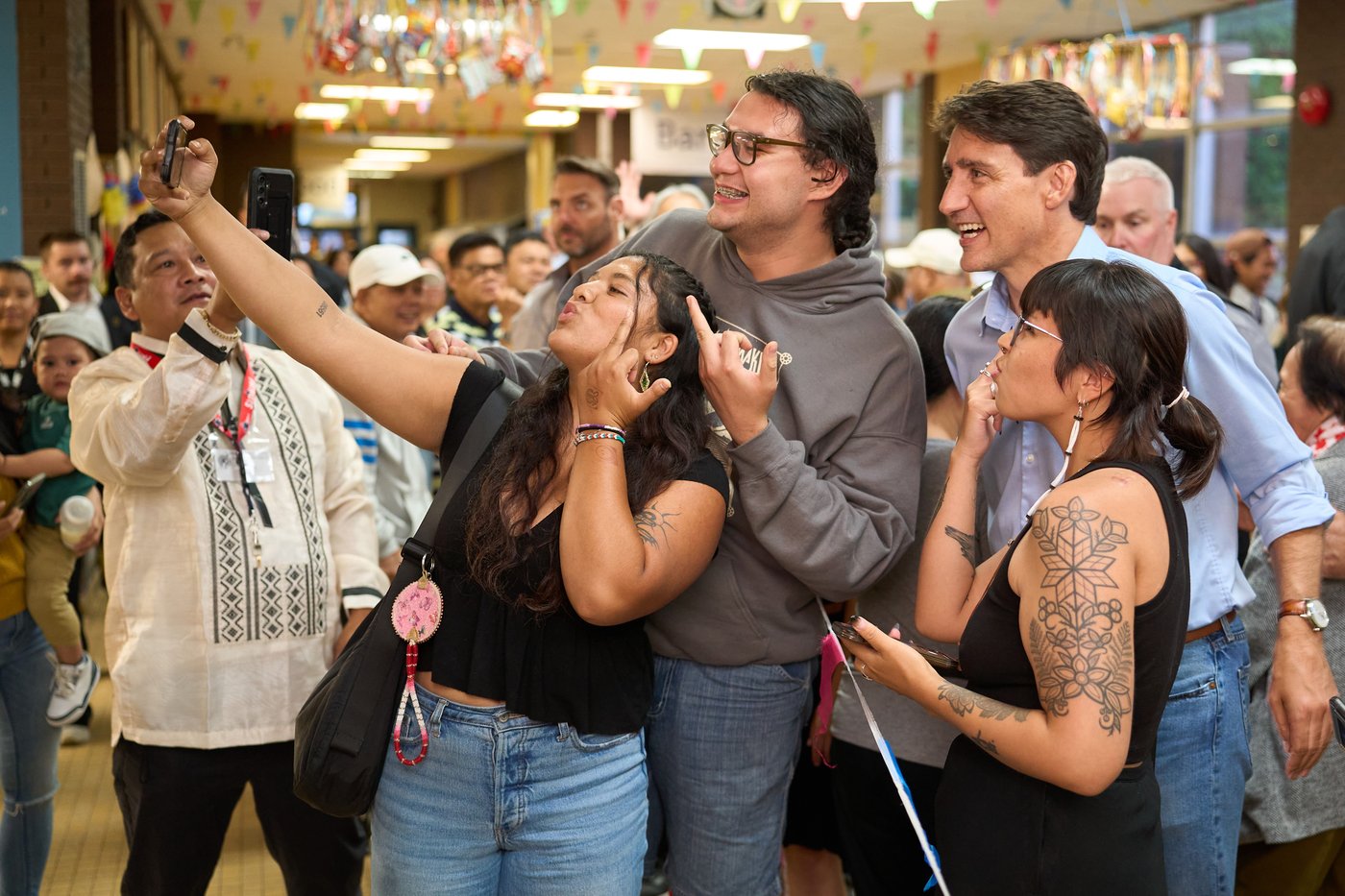 Le photographe pigiste de La Presse Canadienne, David Lipnowski, est en nomination dans la catégorie «Photographie documentaire» pour sa photo d'un trio faisant un doigt d'honneur à l'ancien premier ministre Justin Trudeau tout en posant pour un égoportrait au Festival Folklorama de Winnipeg.