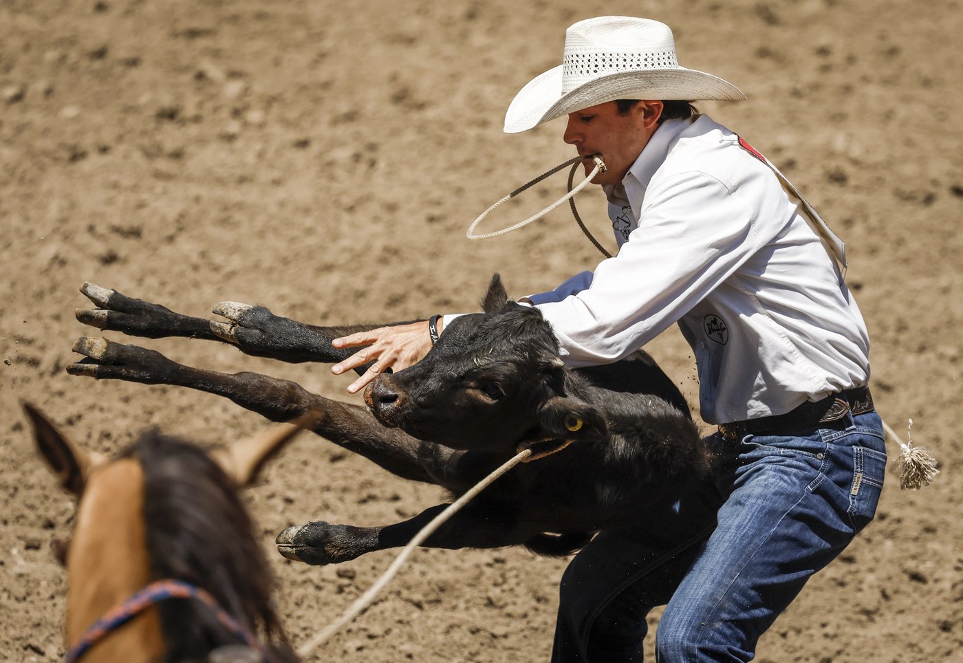 La prise du veau au lasso implique de relâcher un veau dans l’arène où le compétiteur, à cheval, le pourchasse afin de lui passer un lasso au cou pour le projeter au sol et ensuite descendre de sa monture et lui attacher trois pattes le plus rapidement possible. Le terrassement du bouvillon – un bœuf adolescent – consiste à pourchasser la bête à cheval, descendre de la monture, attraper le bouvillon par les cornes et le projeter au sol pour que sa tête et ses quatre pattes pointent dans la même direction.