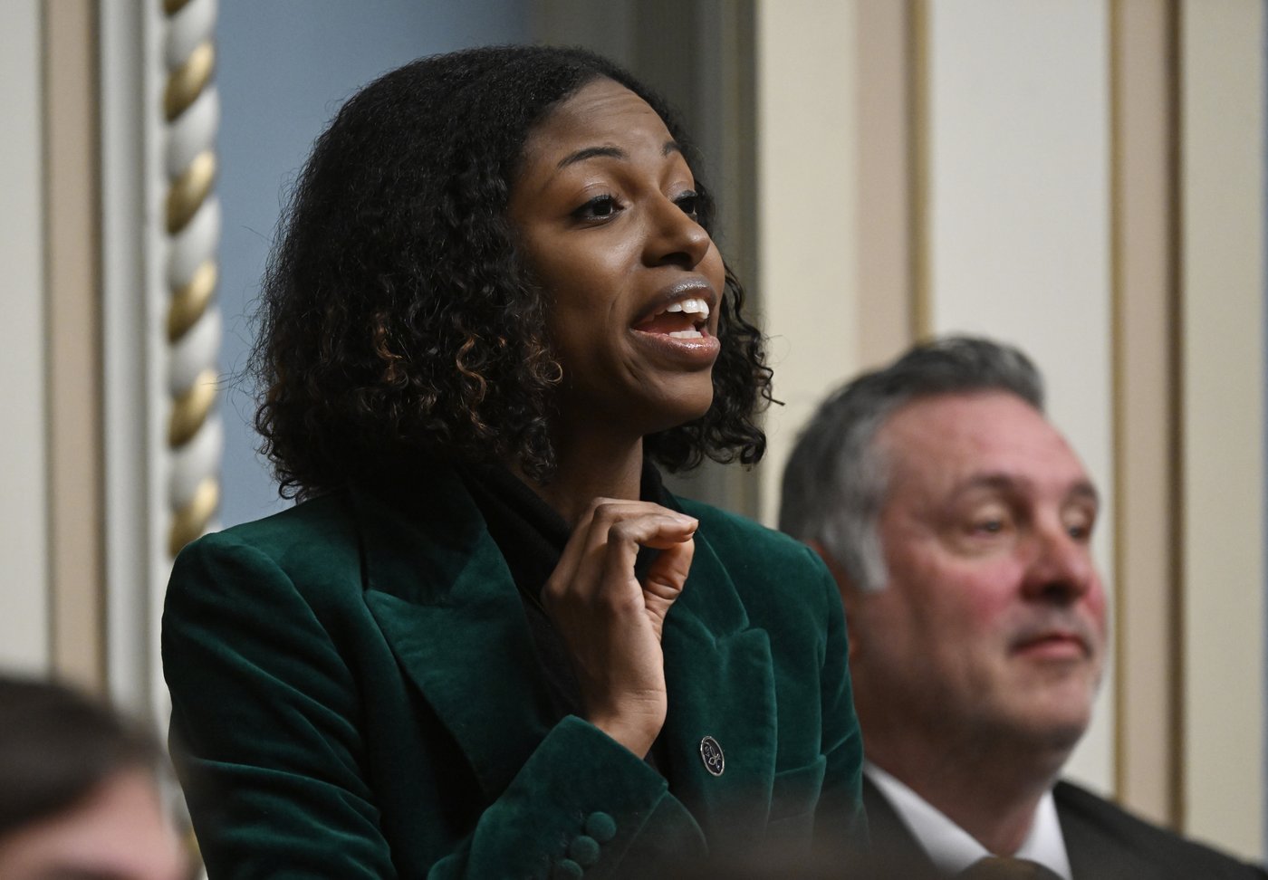 Lors d'un point de presse lundi aux abords d'une école de Charlesbourg, à Québec, la porte-parole libérale en éducation, Madwa-Nika Cadet, a rappelé les compressions de 570 millions $ annoncées en juin.