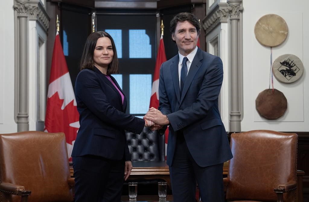 Cette dernière a remercié le premier ministre pour le «soutien et la solidarité formidables» du Canada dans l'affaiblissement du régime au Bélarus, affirmant que son peuple veut les mêmes libertés dont jouissent les Canadiens chaque jour.