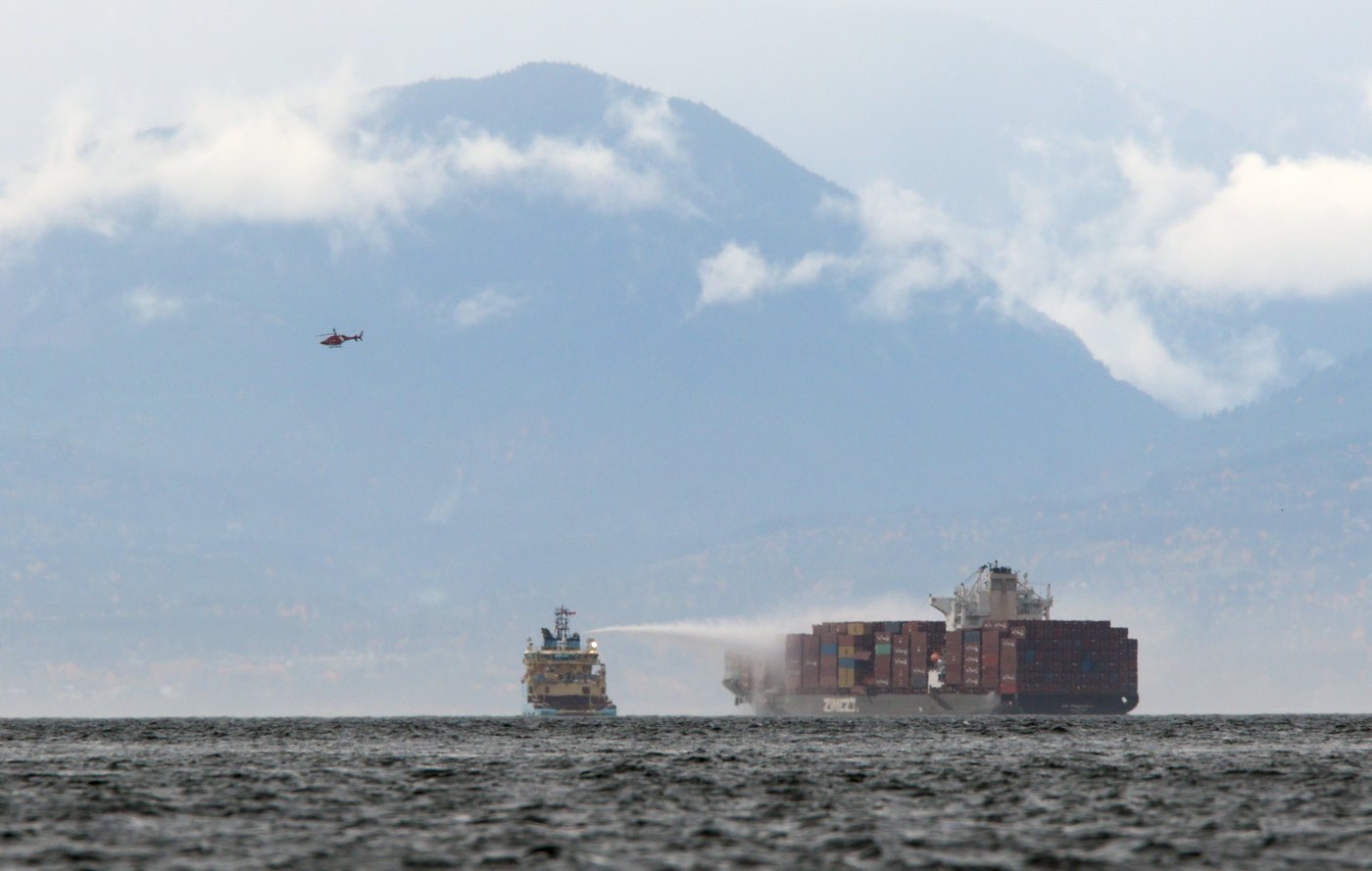 Environ 36 heures plus tard, alors que le navire était ancré au large de Victoria, un incendie s'est déclaré dans un conteneur transportant un produit chimique dangereux, qui s'est ensuite propagé à d'autres conteneurs.