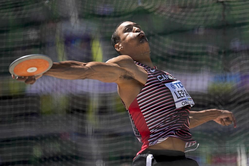 EUGENE, Ore. — Le Canadien Pierce LePage a pris les commandes du décathlon avec deux épreuves à faire, dimanche, lors des Championnats du monde d'athlétisme.