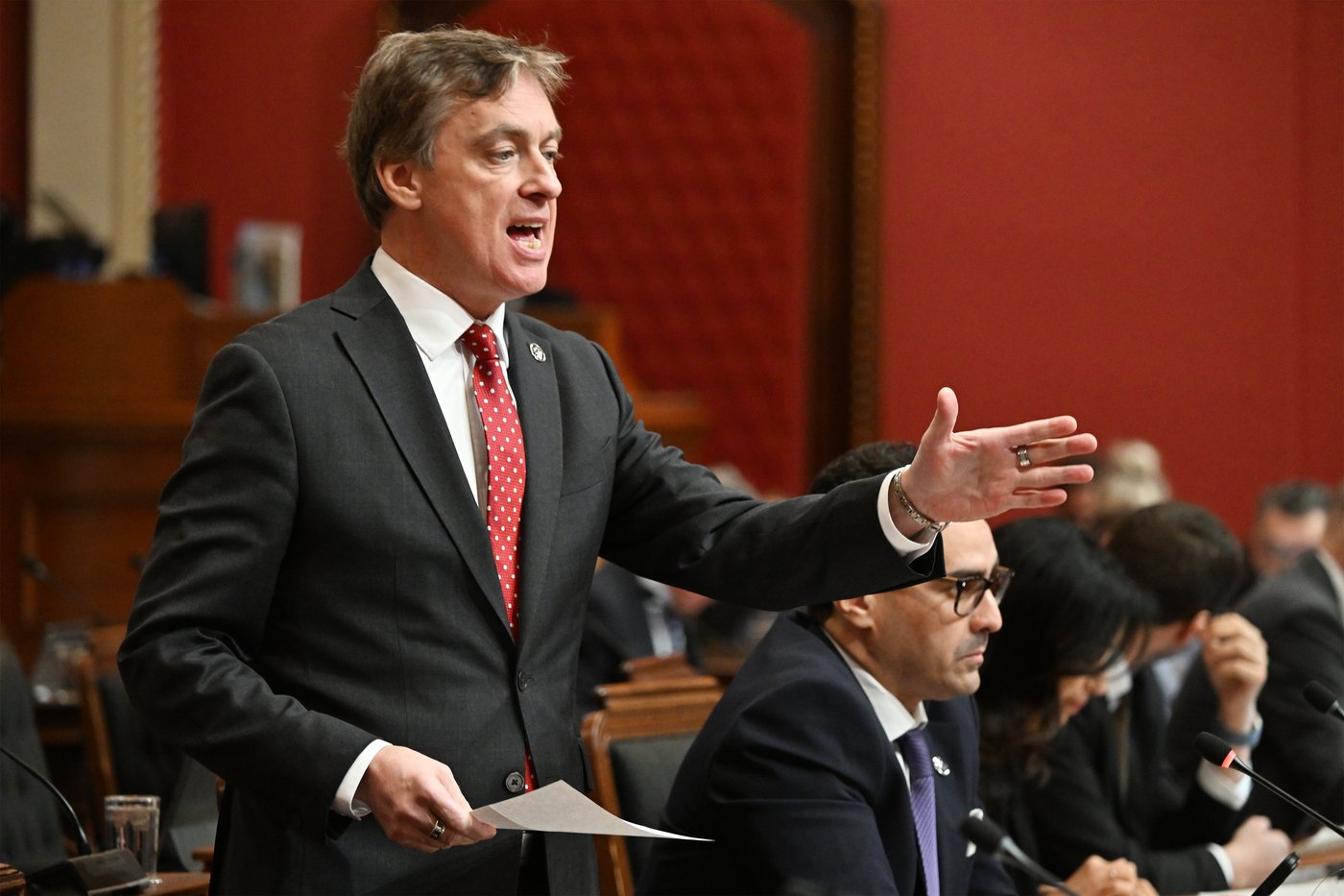 «J'ai une source qui m'informe que le Conseil exécutif national de la CAQ a travaillé sur des modalités visant à organiser, le cas échéant, un congrès à la direction de la CAQ», a dit Marc Tanguay, au Salon rouge mercredi lors de l’étude de crédits alors qu’il questionnait le premier ministre.