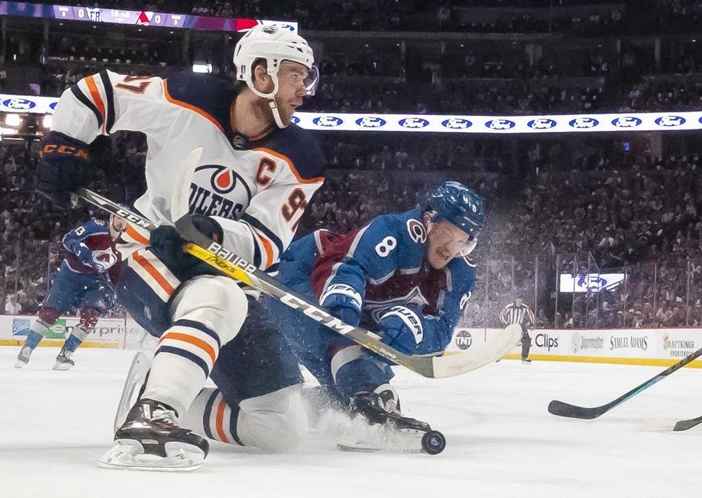 Le défenseur de l'Avalanche du Colorado s'est mis à accélérer à reculons avant d'effectuer son pivot, d'amener McDavid contre la rampe et de le harponner pour qu'il perde le contrôle du disque.
