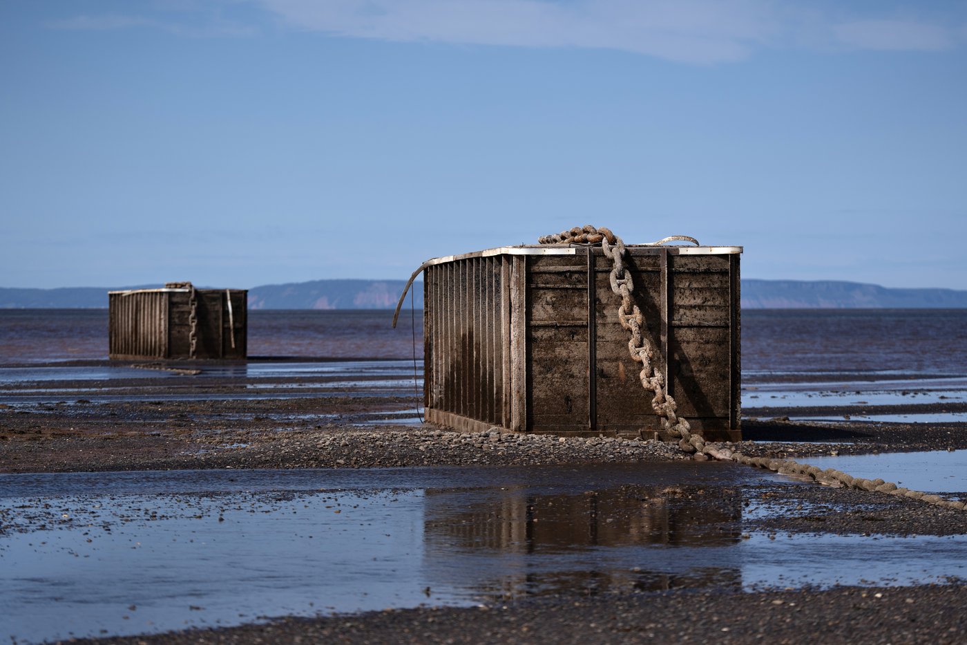 Les wagons et leur immense chaîne ont été laissés sur les berges de la baie de Fundy, près de Walton, lorsque l'entreprise a déclaré faillite le 29 août.