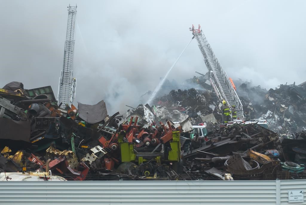 Mme Reardon explique que la stratégie des pompiers est de retourner le tas de ferraille et de s'assurer que les braises sont bien éteintes.
