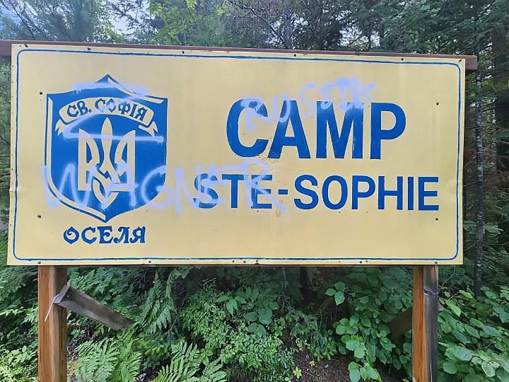 CHERTSEY, Qc — Les responsables d'un camp d'été pour les enfants ukrainiens à Chertsey, dans Lanaudière, déplorent qu'un panneau ait été barbouillé de graffitis prorusses.