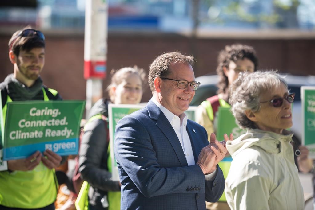 Plus tôt dans la journée, M. Schreiner s'était arrêté dans la circonscription d'University-Rosedale, à Toronto, où l'ancienne commissaire à l'environnement Dianne Saxe est considérée comme une autre candidate vedette pour le Parti vert.
