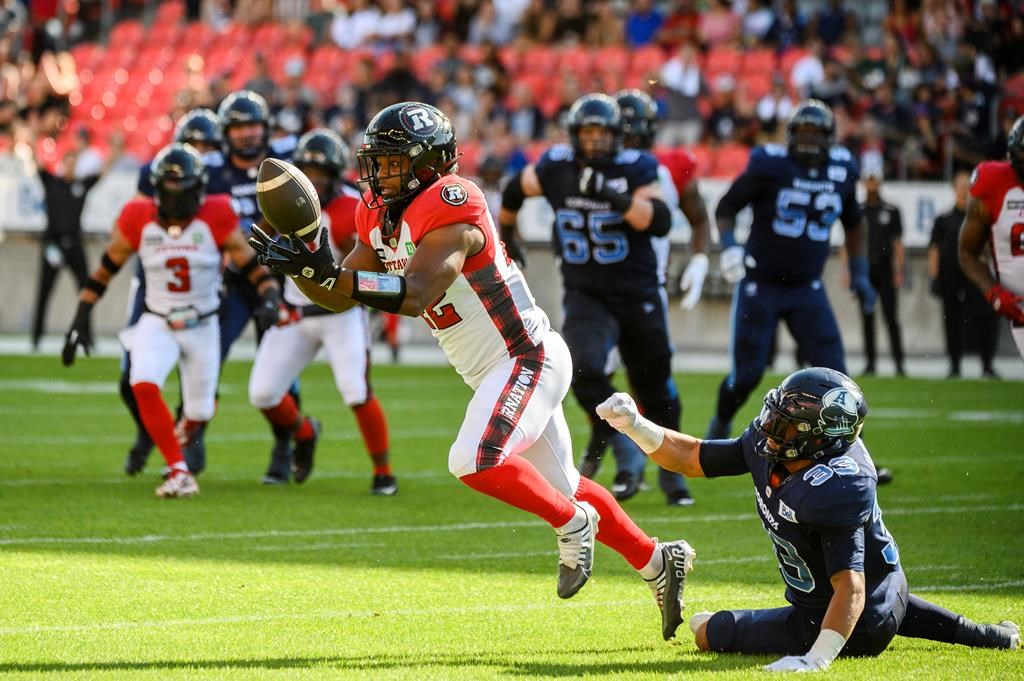 Jaelon Acklin a attrapé une passe de touché et a mené les siens avec 144 verges alors que le Rouge et Noir a défait les Argonauts de Toronto 23-13 au BMO Field, dimanche.