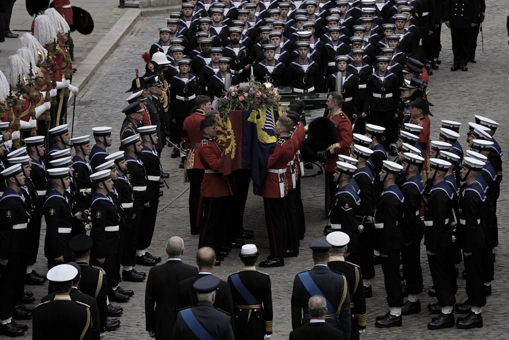LONDRES — Sous le son des cornemuses et des cloches, le cercueil de la reine Élisabeth II a été escorté par 142 marins en direction de l'abbaye de Westminster pour les funérailles d'État, lundi matin, pour ce qui sera le point culminant de la période de 10 jours de deuil national au Royaume-Uni.