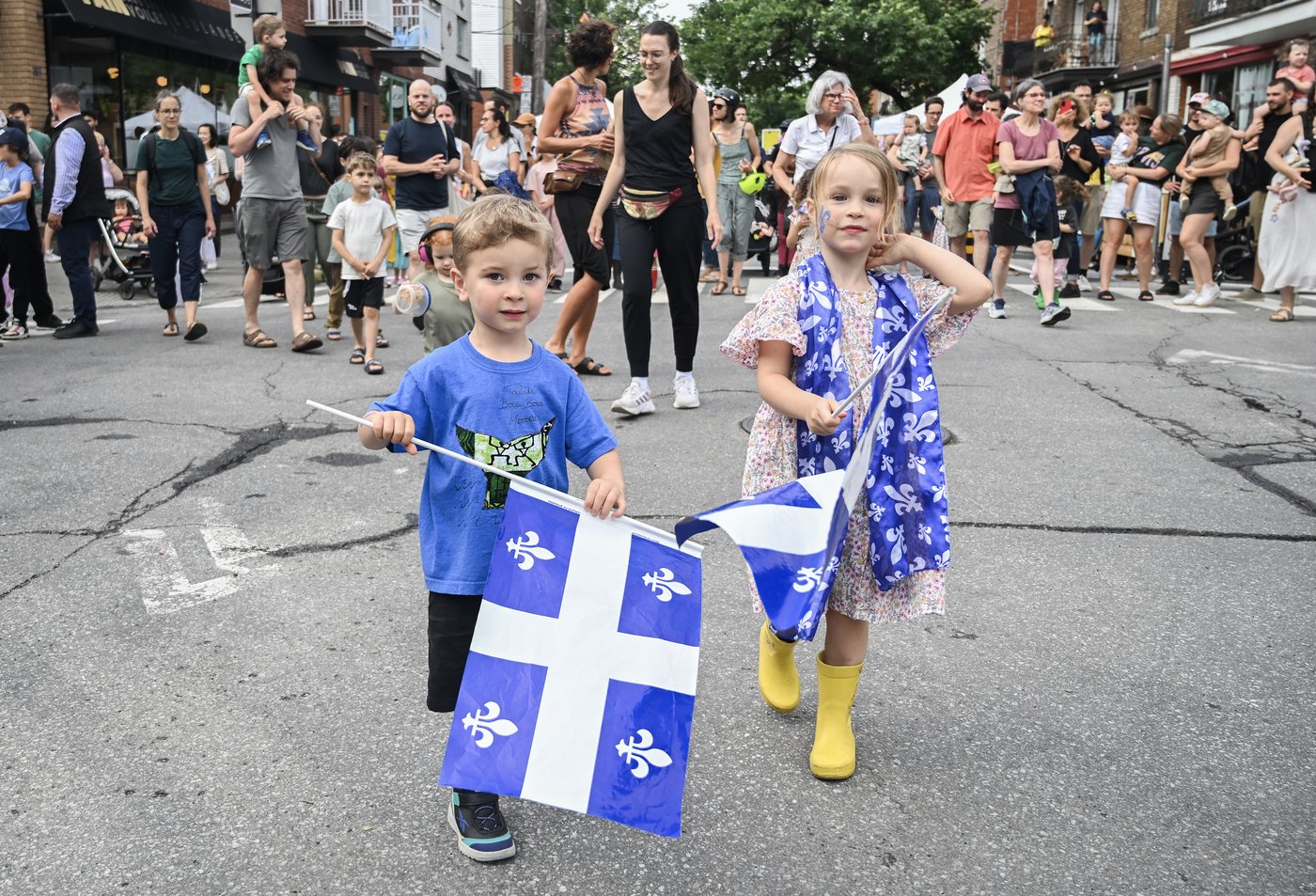 Des drapeaux de la province flottaient par centaines. Le bleu était évidemment à l’honneur, que ce soit pour les chapeaux et casquettes ou pour les fleurs de lys maquillés sur le visage de nombreux enfants.