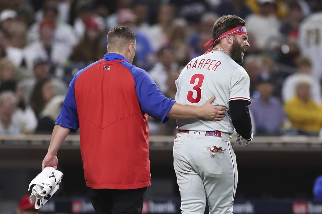 SAN DIEGO — Le voltigeur des Phillies de Philadelphie Bryce Harper s'est fracturé le pouce de la main gauche après avoir été atteint par une rapide de 97 milles à l'heure de Blake Snell lors de la quatrième manche d'un duel contre les Padres de San Diego, samedi.
