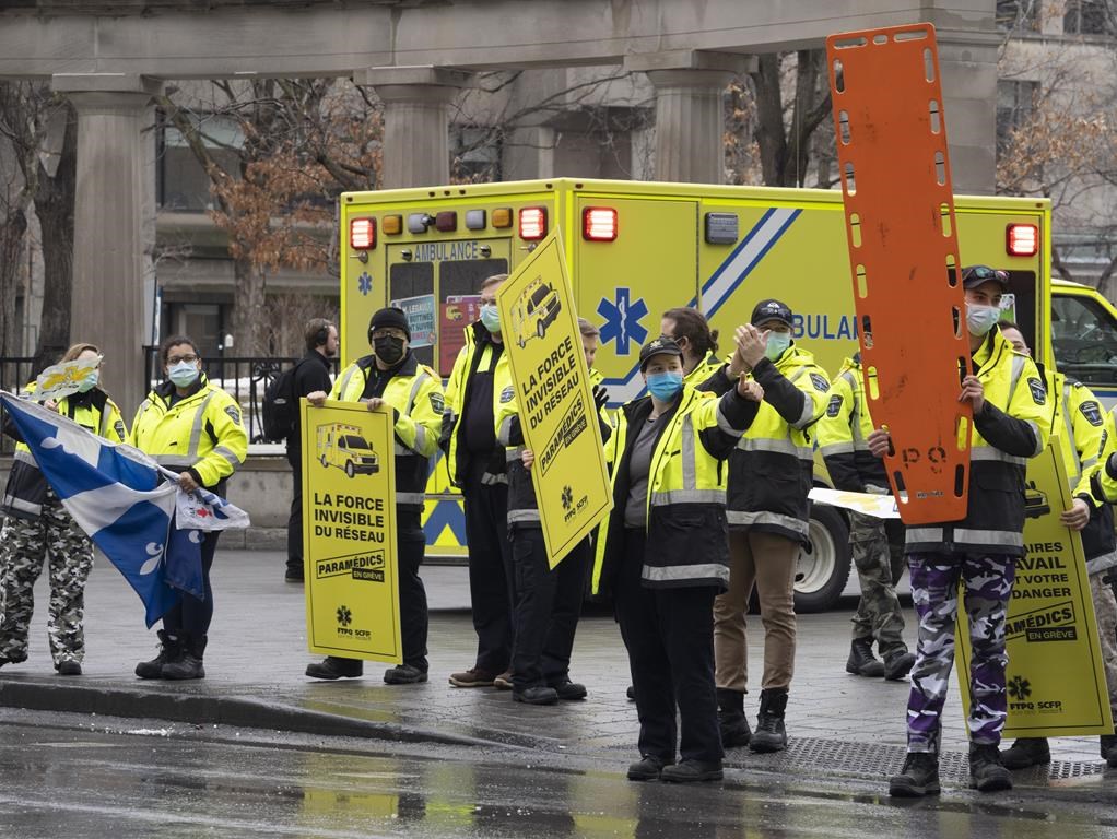 MONTRÉAL — Le syndicat des ambulanciers paramédicaux d'Urgences-santé, qui couvre les territoires de Montréal et Laval, appliquera lundi des moyens de pression pour protester contre des conditions de travail qu'il juge inacceptable.