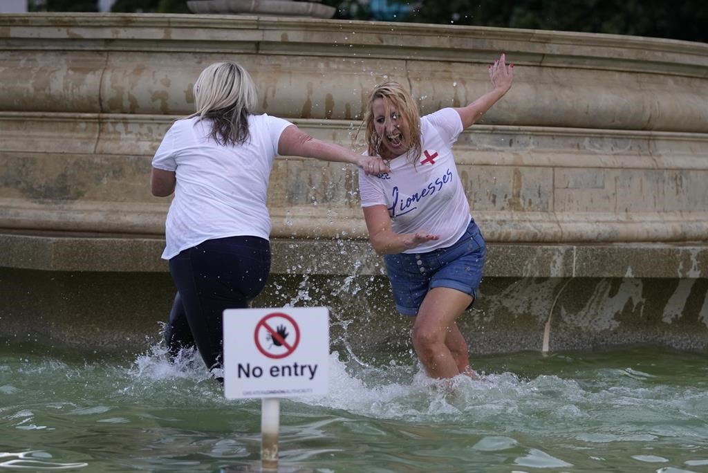 Au Trafalgar Square de Londres, les partisans ont chanté «ça s'en vient à la maison» — une référence à l'hymne anglais «Three Lions» et à son refrain «le football s'en vient à la maison» — et se sont lancés dans des fontaines pour célébrer.