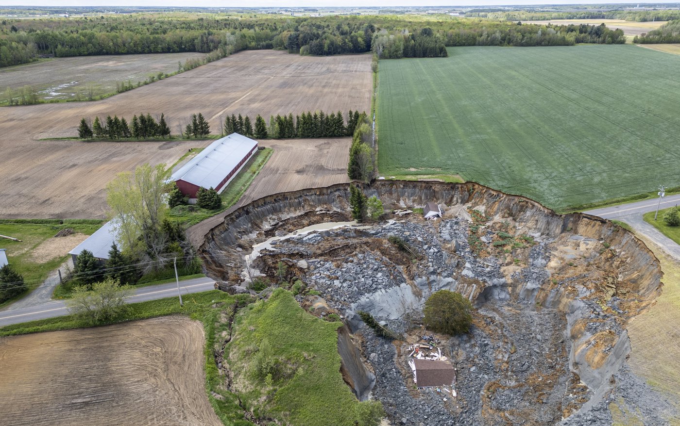 Le glissement de terrain de Sainte-Monique a provoqué un cratère d’une profondeur estimée de 25 mètres à certains endroits.