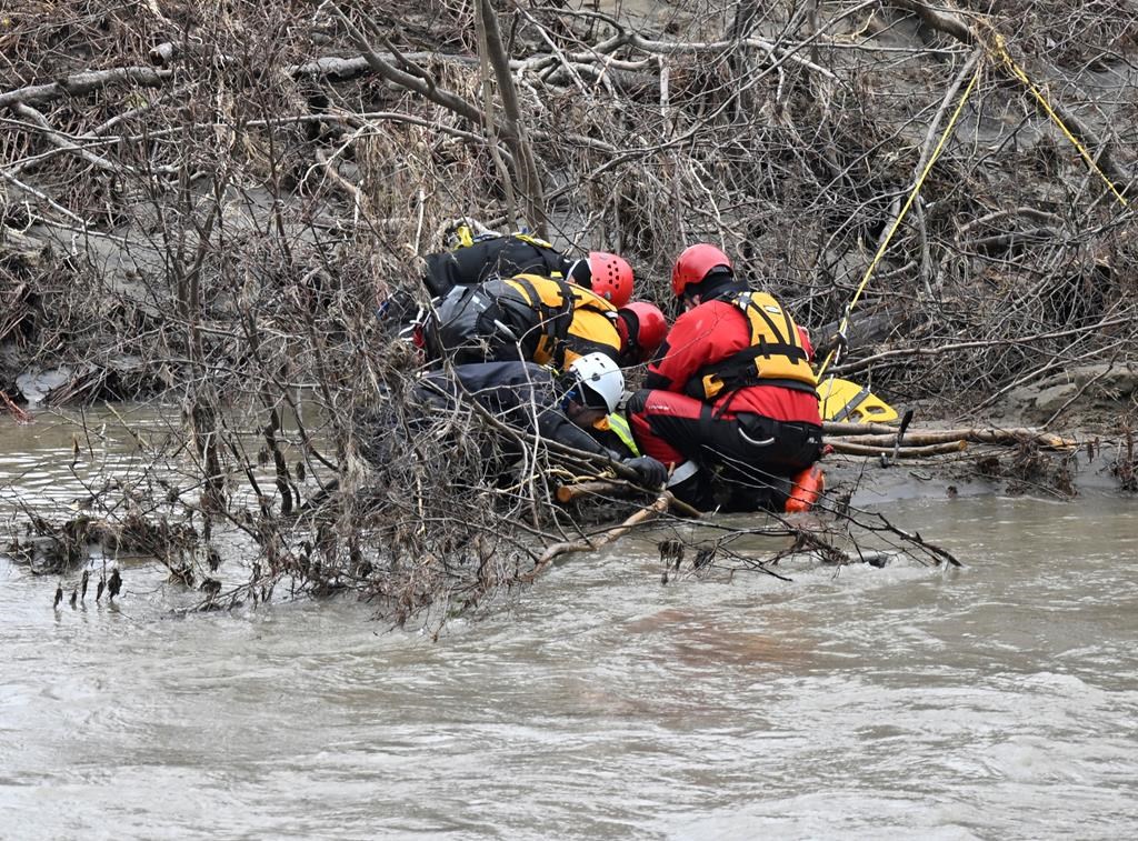 Dans le cadre de leur intervention, les pompiers s'étaient déplacés dans un véhicule amphibie muni de chenilles et d'un moteur hors-bord, mais à mi-chemin du trajet, le véhicule s'est mis à dériver et a été emporté par le courant, se retrouvant coincé contre un arbre.