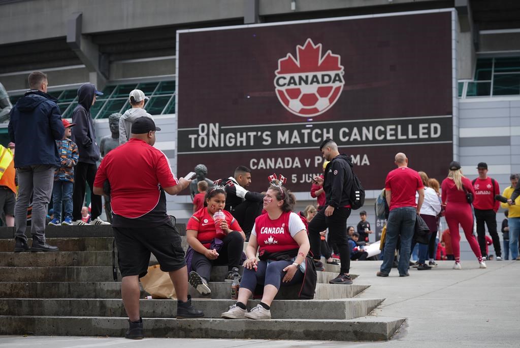 Le match prévu à la B.C. Place de Vancouver a été annulé moins de deux heures avant le coup d'envoi. Des centaines de partisans déçus vêtus de chandails rouges et blancs se sont attardés à l'extérieur du stade après l'annonce de la nouvelle.