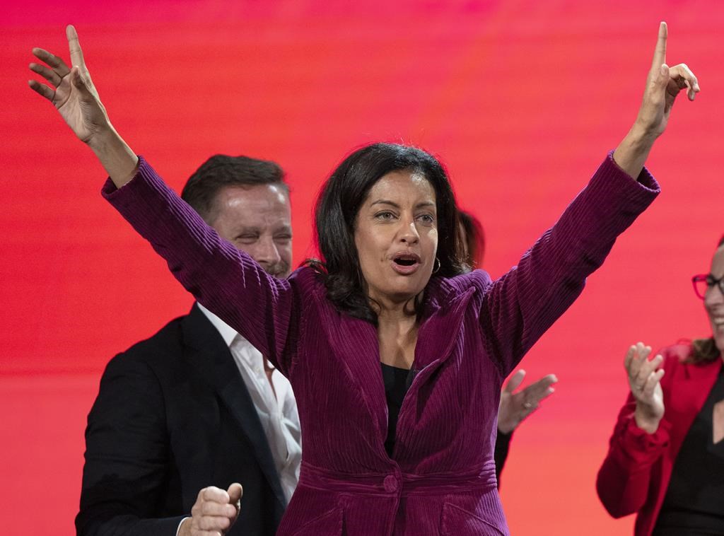 «Dans les prochains jours, mois, années, vous allez voir que je vais déployer la même énergie, la même conviction, la même ambition que je caresse pour nous tous, ici, au Québec, et vous allez voir qu'ensemble on est capable d'accomplir de grandes choses pour un Québec qui représente l'ensemble des Québécois», a-t-elle lancé à ses partisans réunis au théâtre Corona, à Montréal.
