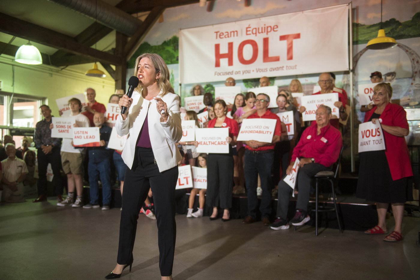 La cheffe du parti était accompagnée de Marisa Pelkey, candidate libérale dans Woodstock-Hartland, qui a déclaré aux journalistes que de nombreux électeurs de Woodstock affirment que leur priorité absolue est l'accès aux soins de santé.