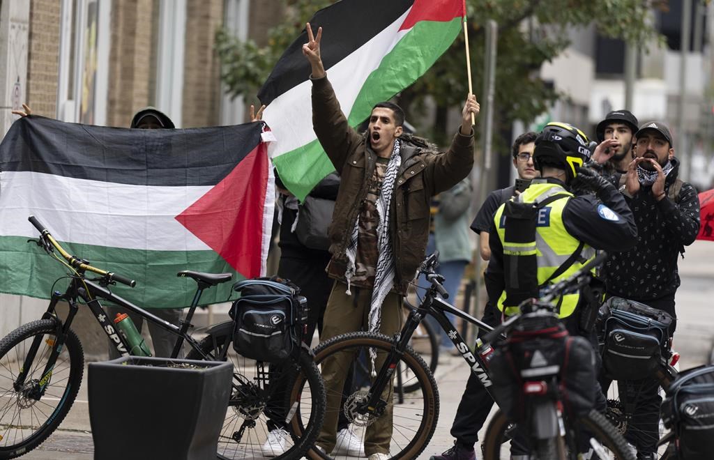 BROMONT, Qc — Ni Ottawa ni Québec n’ont l’intention d’interdire les manifestations propalestiniennes comme l’a fait la France, mais les corps policiers seront sur le qui-vive pour s’assurer qu'elles ne franchissent pas la ligne du discours haineux ou de l’incitation à la violence.